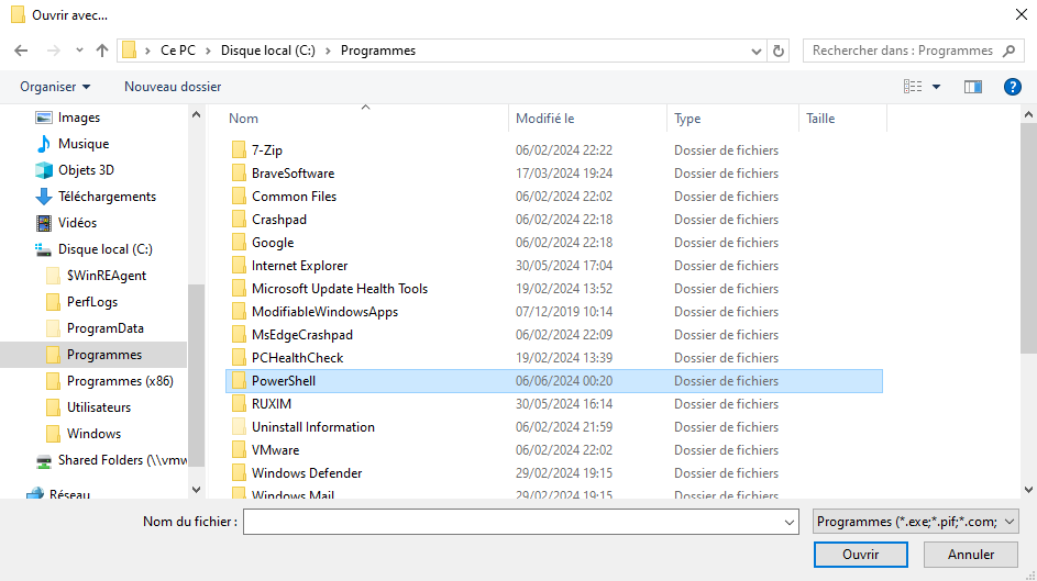 Une fois cela fait, vous devez désormais mettre en fichier par défaut les fichiers .ps1 !