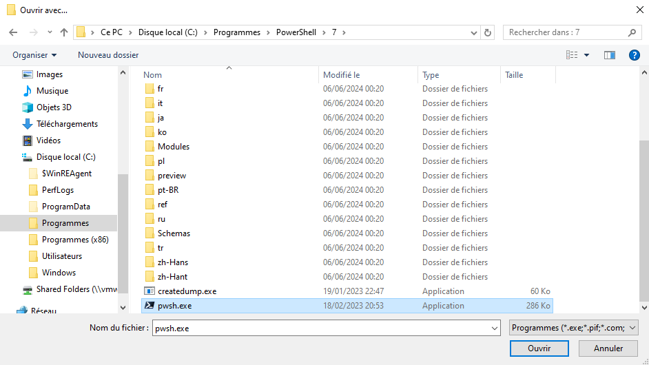 Ouvrez le dossier 7 puis chercher pwsh.exe et faite ouvrir !