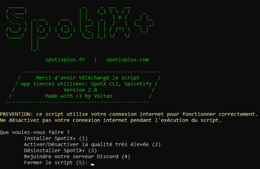 Le script vous propose de redémarrer votre ordinateur (extrêmement recommander si vous réinstaller SpotiX+ ou Spotify).