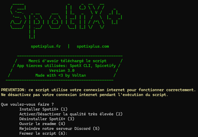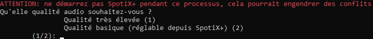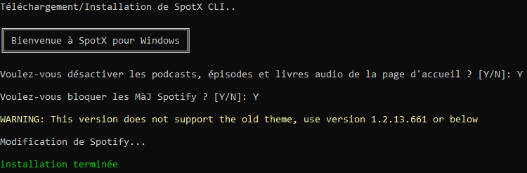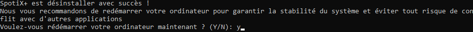 Le script vous propose de redémarrer votre ordinateur (extrêmement recommandé si vous réinstallez SpotiX+ ou Spotify).