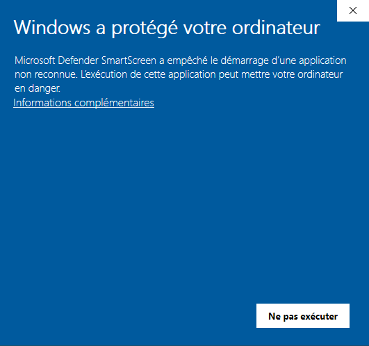 En lançant l'installateur, vous pouvez avoir une fenêtre de ce type.