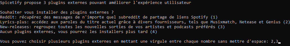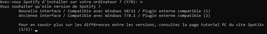 Le script vous demande si vous avez Spotify d'installé actuellement.