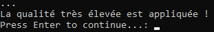 Le script vous demande si vous voulez activer ou désactiver la qualité très élevée.